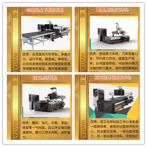很多客戶,想開個(gè)家具廠,但是,在選擇機(jī)器方面比較迷茫,如果您還在猶豫買哪款的話,歡迎去青島家具展看看設(shè)備,會(huì)有一款適合您,超星數(shù)控開料機(jī)廠家參展設(shè)備有:木工加工中心,四工序開料機(jī),絲杠換刀機(jī),自動(dòng)上下料開料機(jī),圓盤換刀開料機(jī),實(shí)木側(cè)銑機(jī),側(cè)孔機(jī)等設(shè)備。